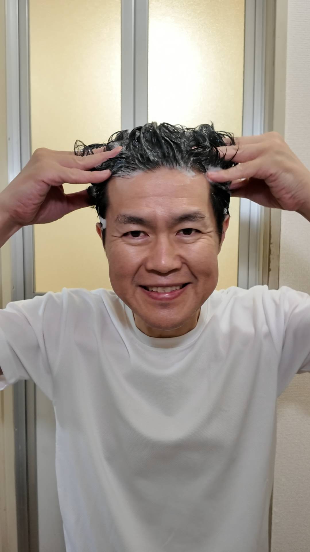 お風呂でシャンプーをする男性|頭皮|洗浄