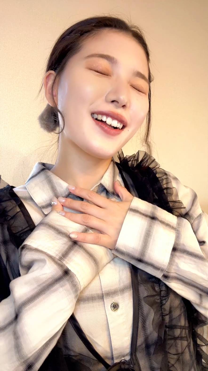 手を胸に当てて安心した表情|日常|安心|感動