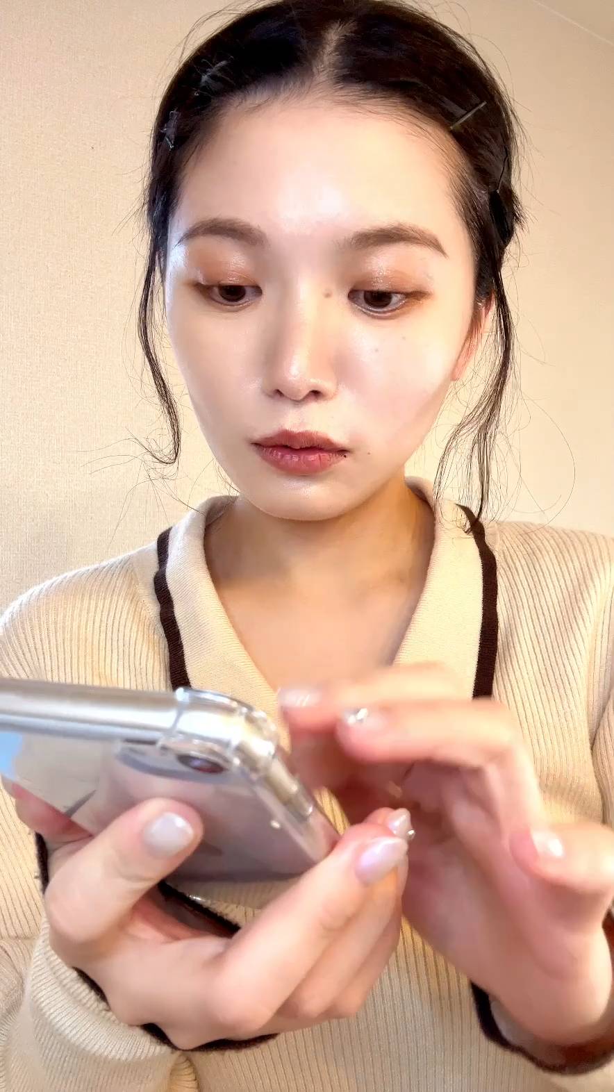 指でスワイプ操作し驚く女性|アプリ|スマホ|日常